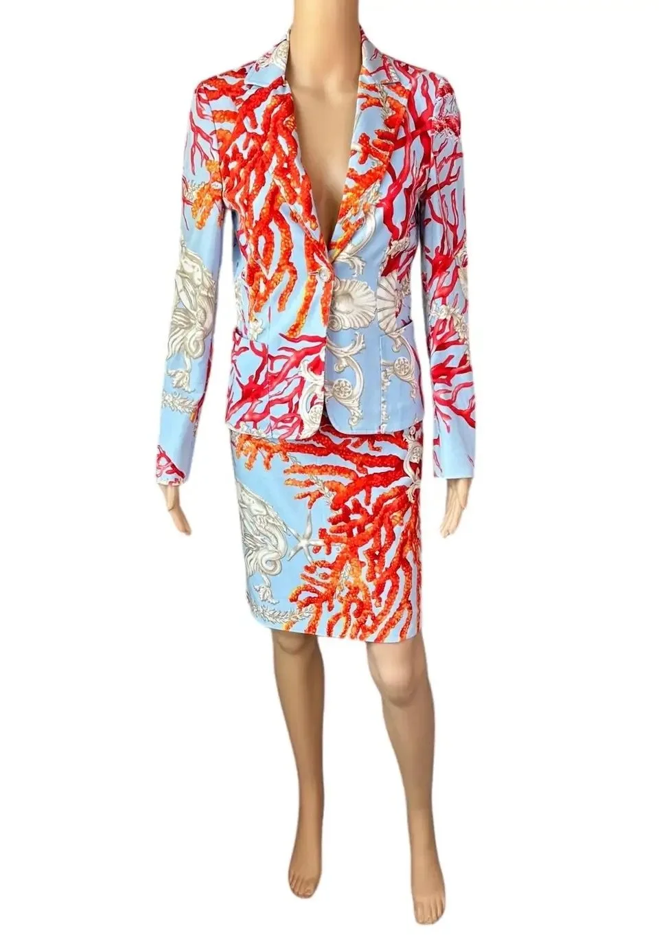 Versace S/S 2005 Blazer Jacket Top & Skirt 2 Piece Set Ensemble